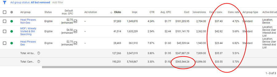 Another campaign for a $79 product… over 10,000 conversions for $33.55 each.