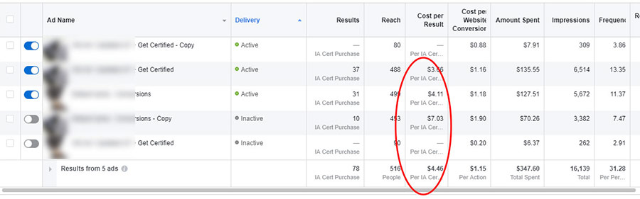 This new campaign is getting $1.36 purchases for $347 software. 1 ad is hitting $0.28 CENTS PER!